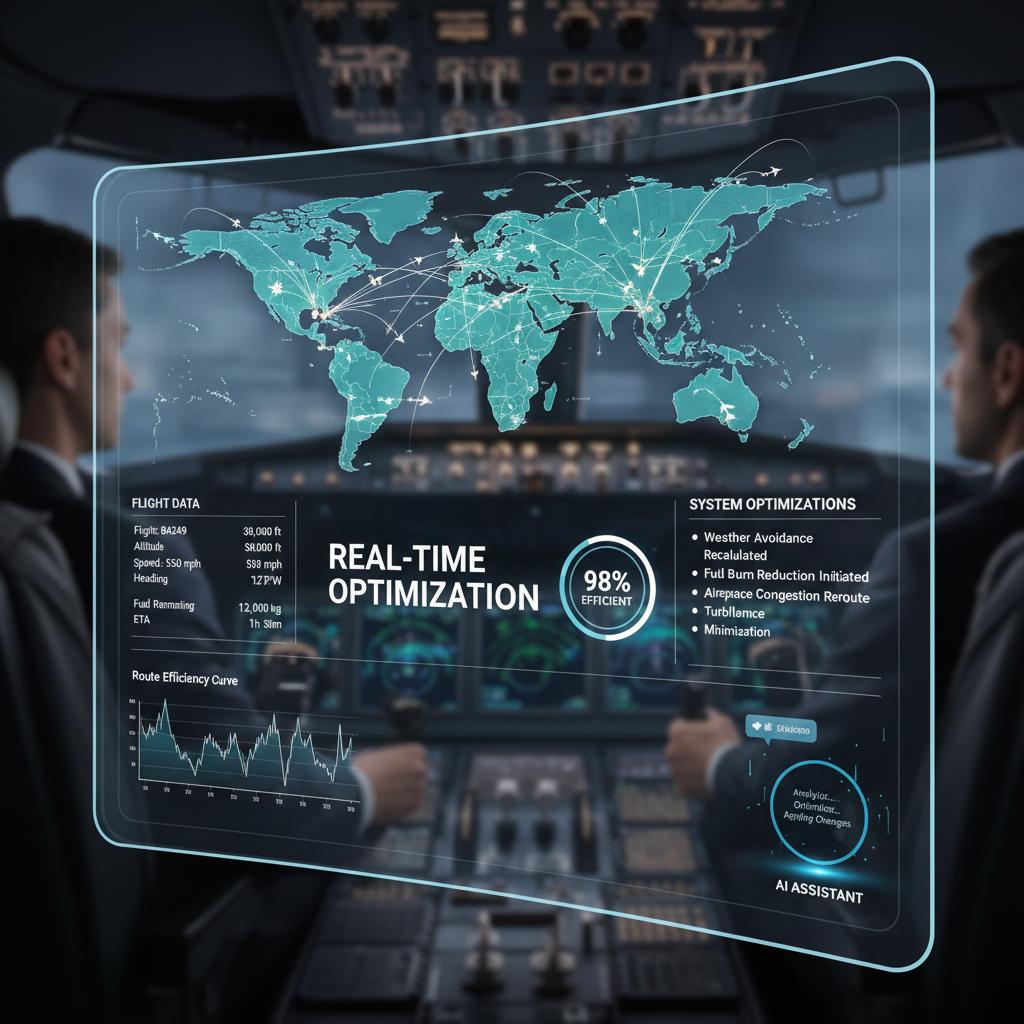 Alt text: AI interface optimizing travel plans in real time, displaying live flight data and personalized recommendations.