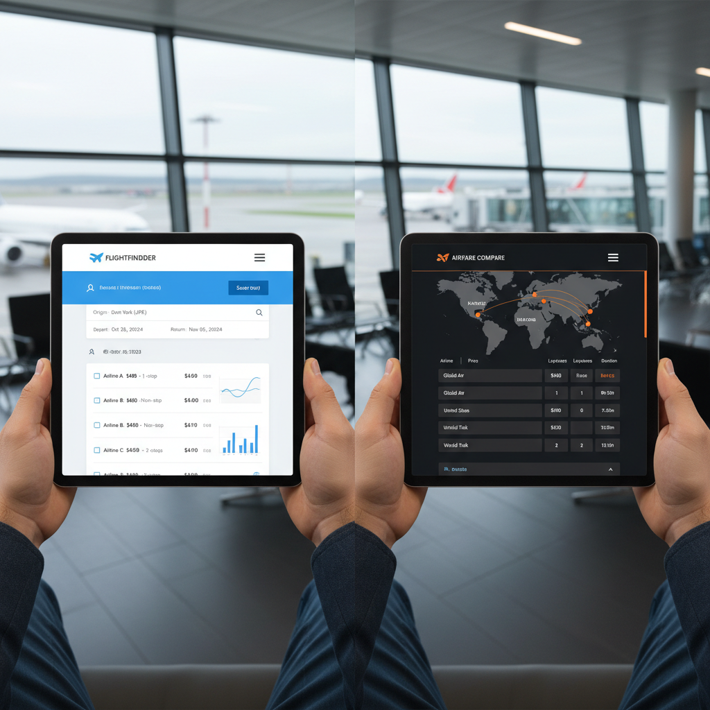 Alt text: Direct airline booking portal shown next to an airline comparison platform, highlighting the choice travelers face.