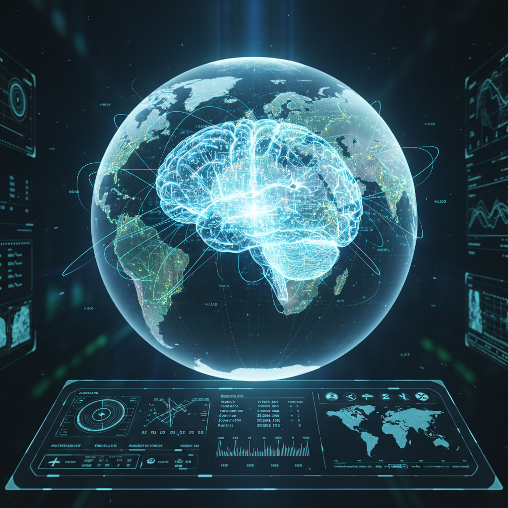 Alt text: AI analyzing global flight data for personalized and predictive flight recommendations.