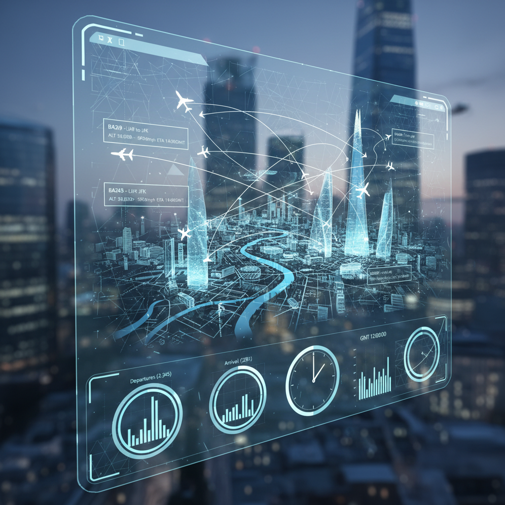 Alt: AI tool scanning London flight data for best deals, representing the rise of intelligent flight search engines