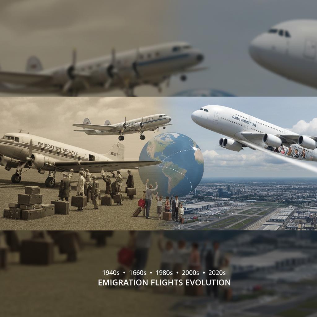 Alt text: Historic and modern planes representing evolution of emigration flights