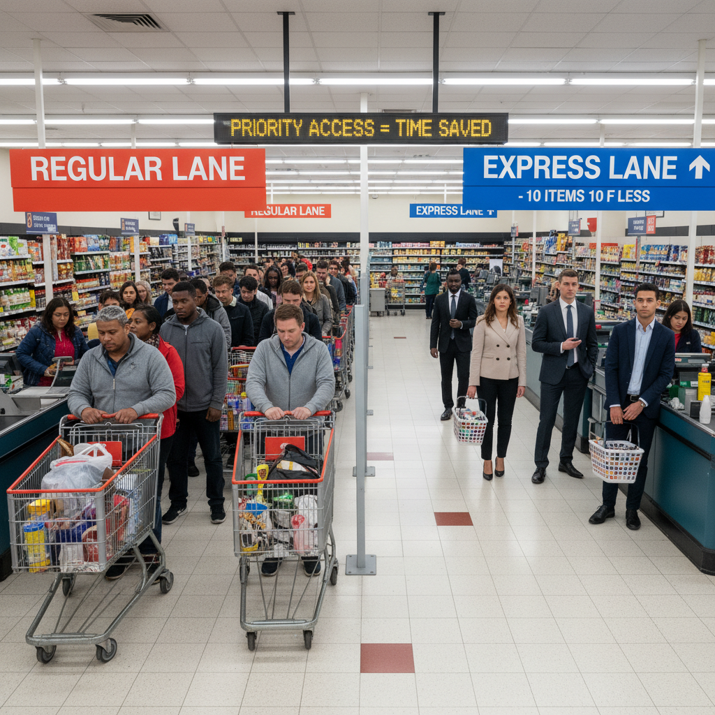 The express lane you see—the velvet rope, the special boarding sign—is only half the story. Today’s fast tracks are as likely to be virtual as physical. A physical express lane is a reserved space: a separate line at security or checkout, a priority counter, or a designated boarding group.