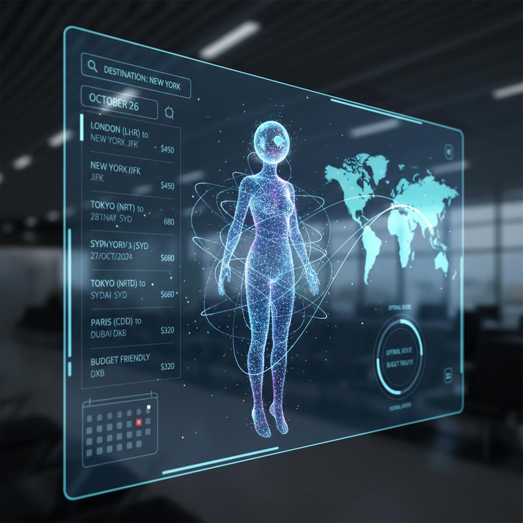 Alt text: AI travel assistant helping a traveler plan complex flights, highlighting AI and flight booking tips
