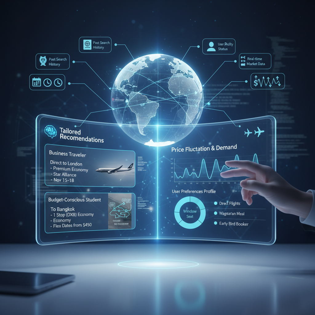 Alt text: AI-driven personalized flight search pathways for flight comparison tool users.