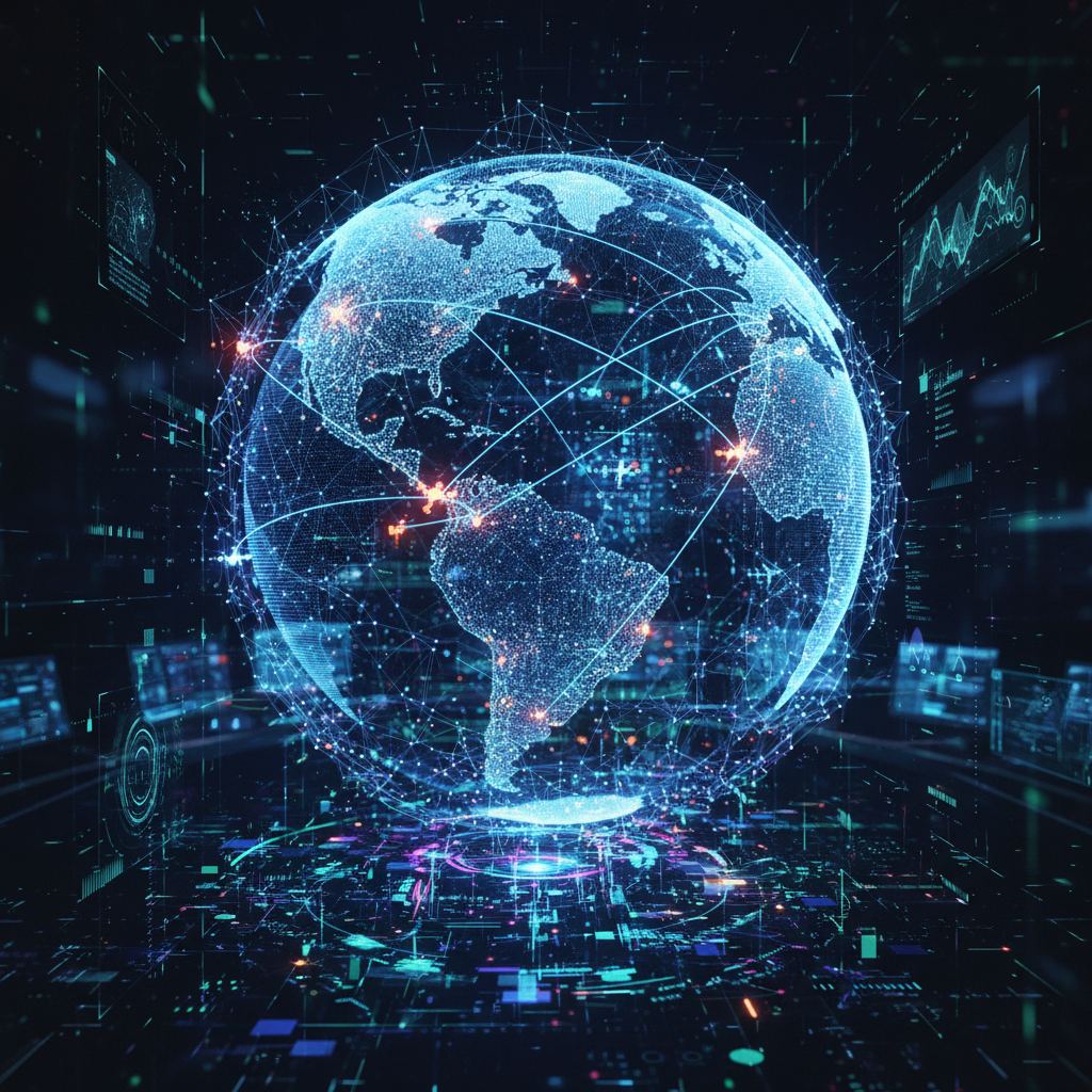 Alt: Futuristic visualization of AI neural networks over a global flight route map, representing AI’s role in transforming flight price drop tracker technology.