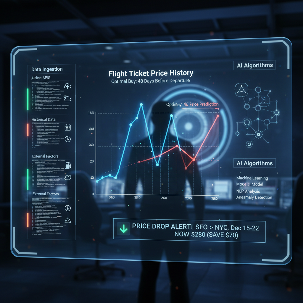 Alt text: AI analyzing flight price data for smarter, more accurate fare predictions.