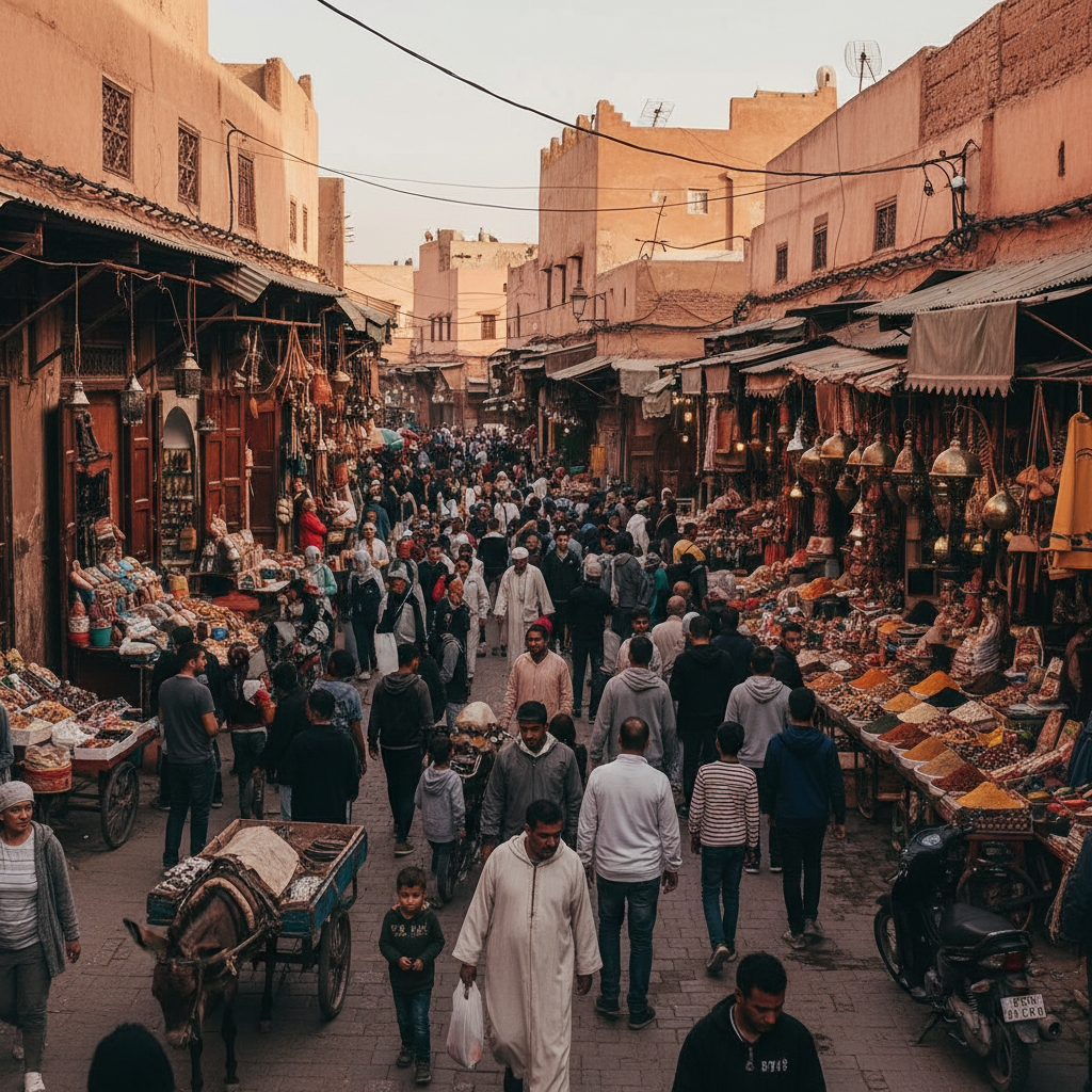 Photo: Tourists and locals in Marrakech’s medina, illustrating the intersection of modernity and tradition.