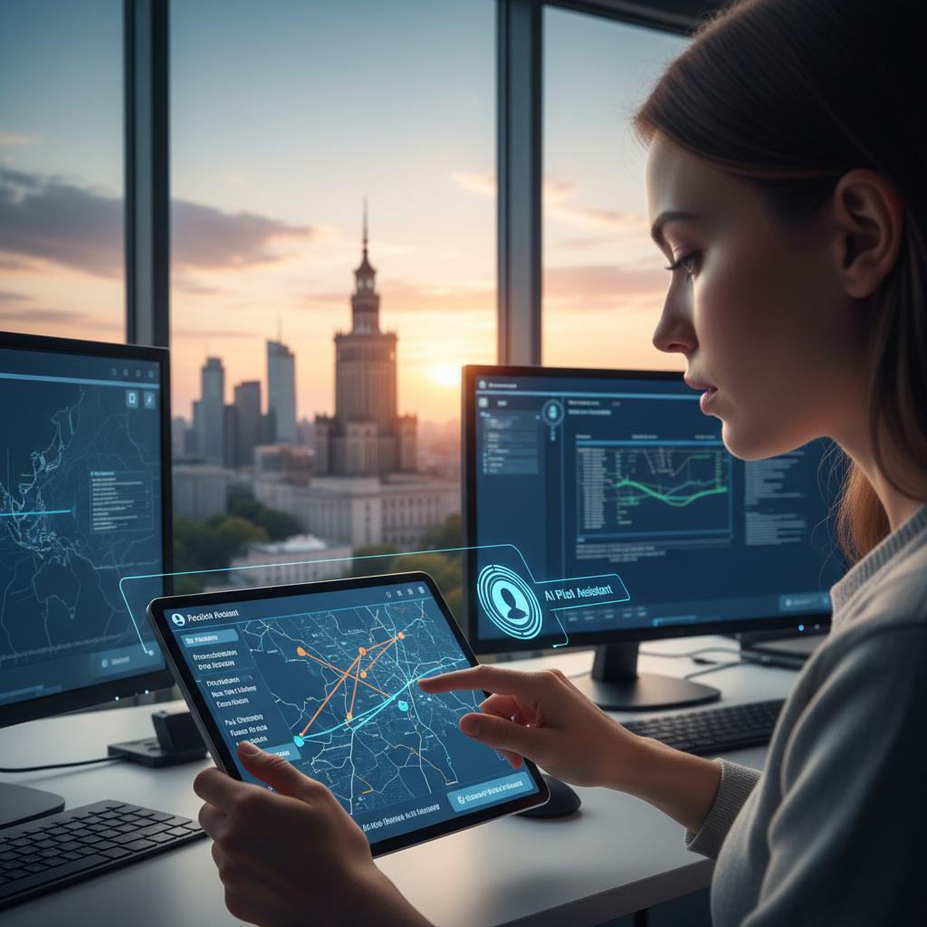 Alt text: Traveler planning personalized Warsaw flight using advanced AI travel interface, showing future of flight search Warsaw.