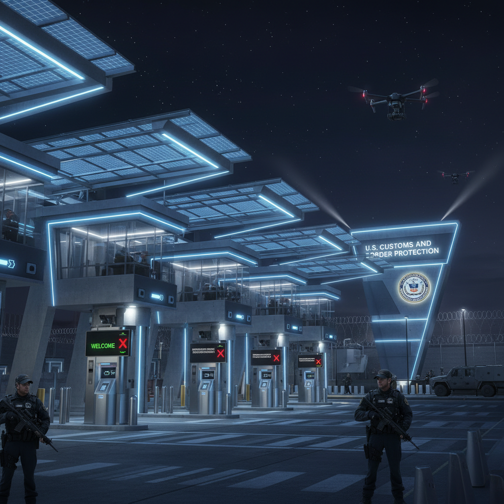 Early 2000s U.S. border checkpoint modernized after 9/11, highlighting the security shift that led to global entry's creation.