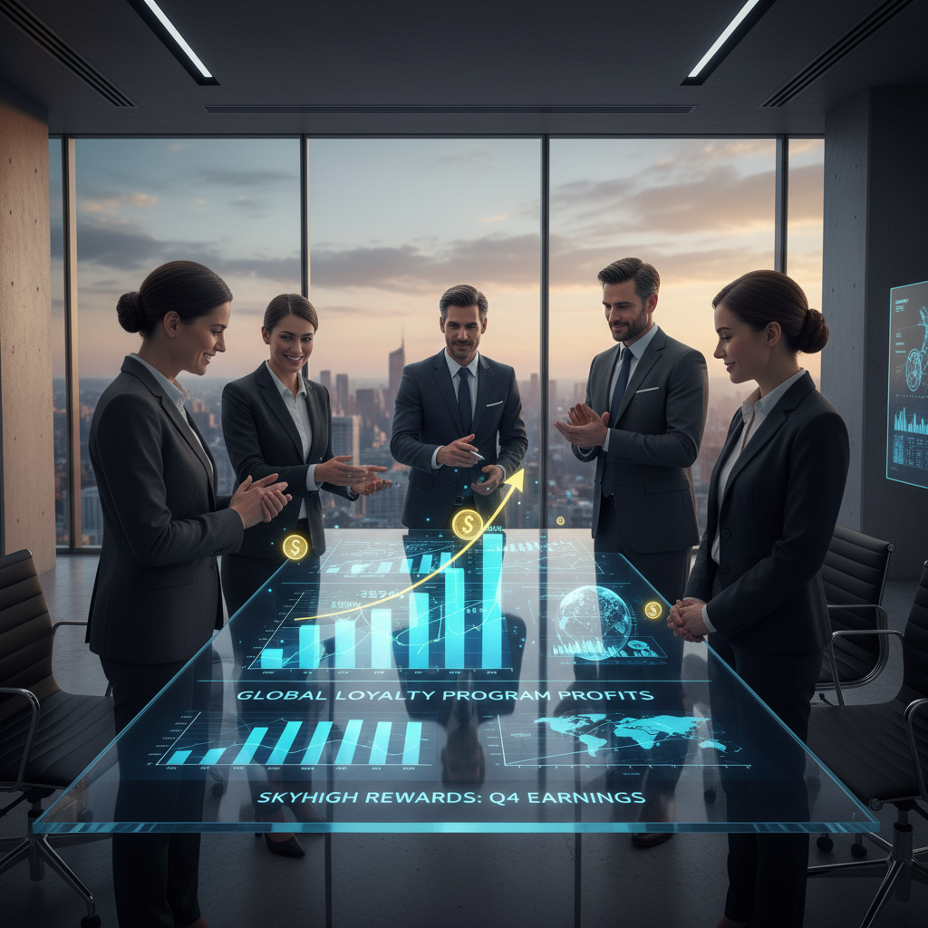 Alt: Airline executives in a conference room, reviewing loyalty program profitability on screen, illustrating the business side of gold status