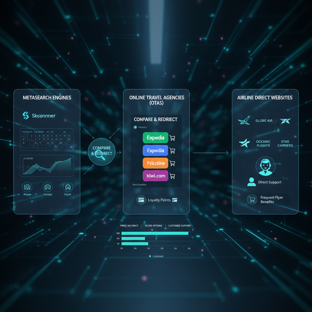- Meta-search: Platforms that aggregate fares from multiple OTAs (Online Travel Agencies) and airlines. Example: Google Flights, Skyscanner.