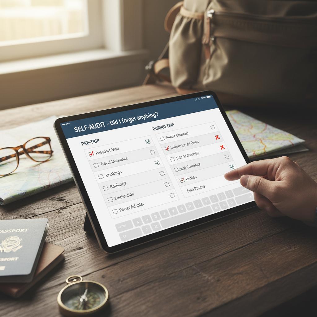 Confident solo traveler enjoying a successful self-planned trip.