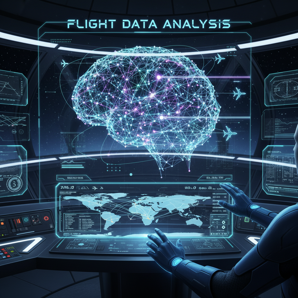 Neural network analyzing global flight data in real time, visualizing the complexity and intelligence behind AI-powered search.