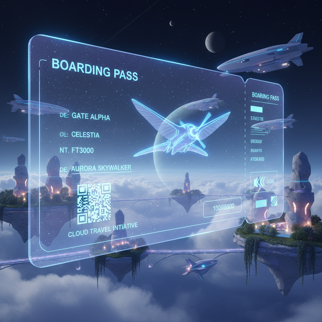 Alt: The future of web check in, digital boarding pass merging into cloud technology.