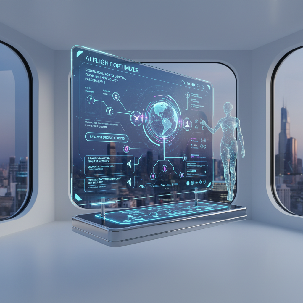 Alt: Modern AI-powered flight search interface displaying personalized recommendations and predictive pricing.