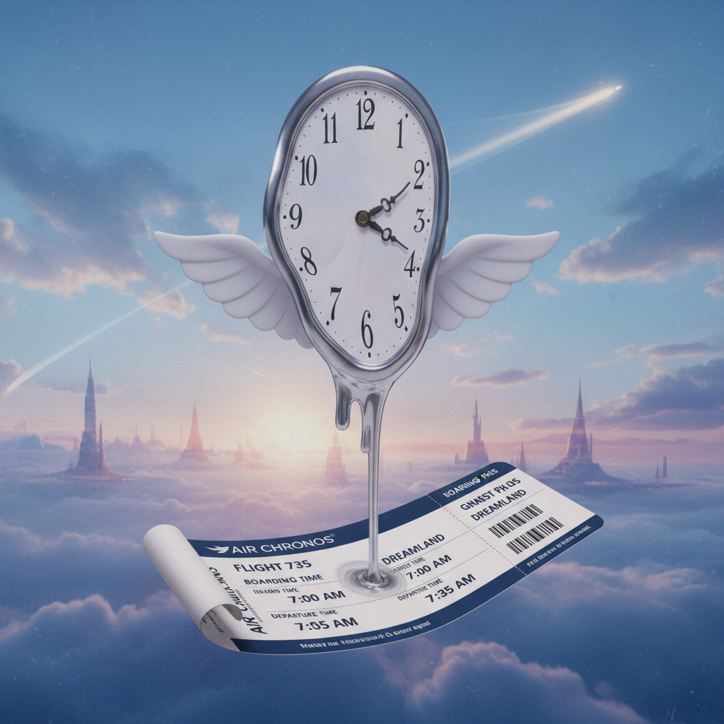 Visual metaphor for the myth of racing against time when booking winter escape flights.